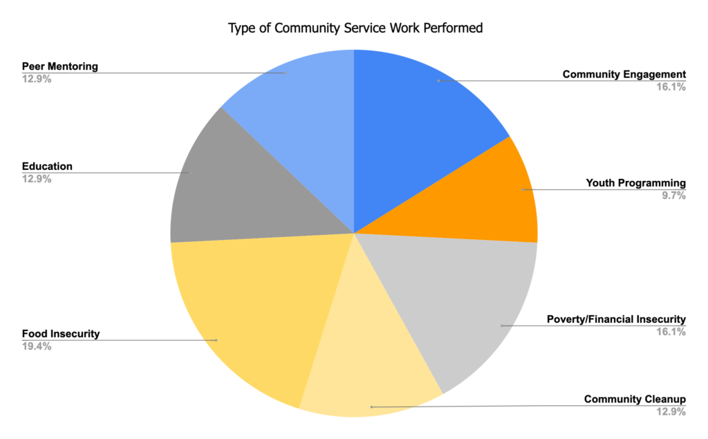 This past school year, students volunteered approximately 10,000 hours of community service. The community service projects helped a variety of areas in our community.